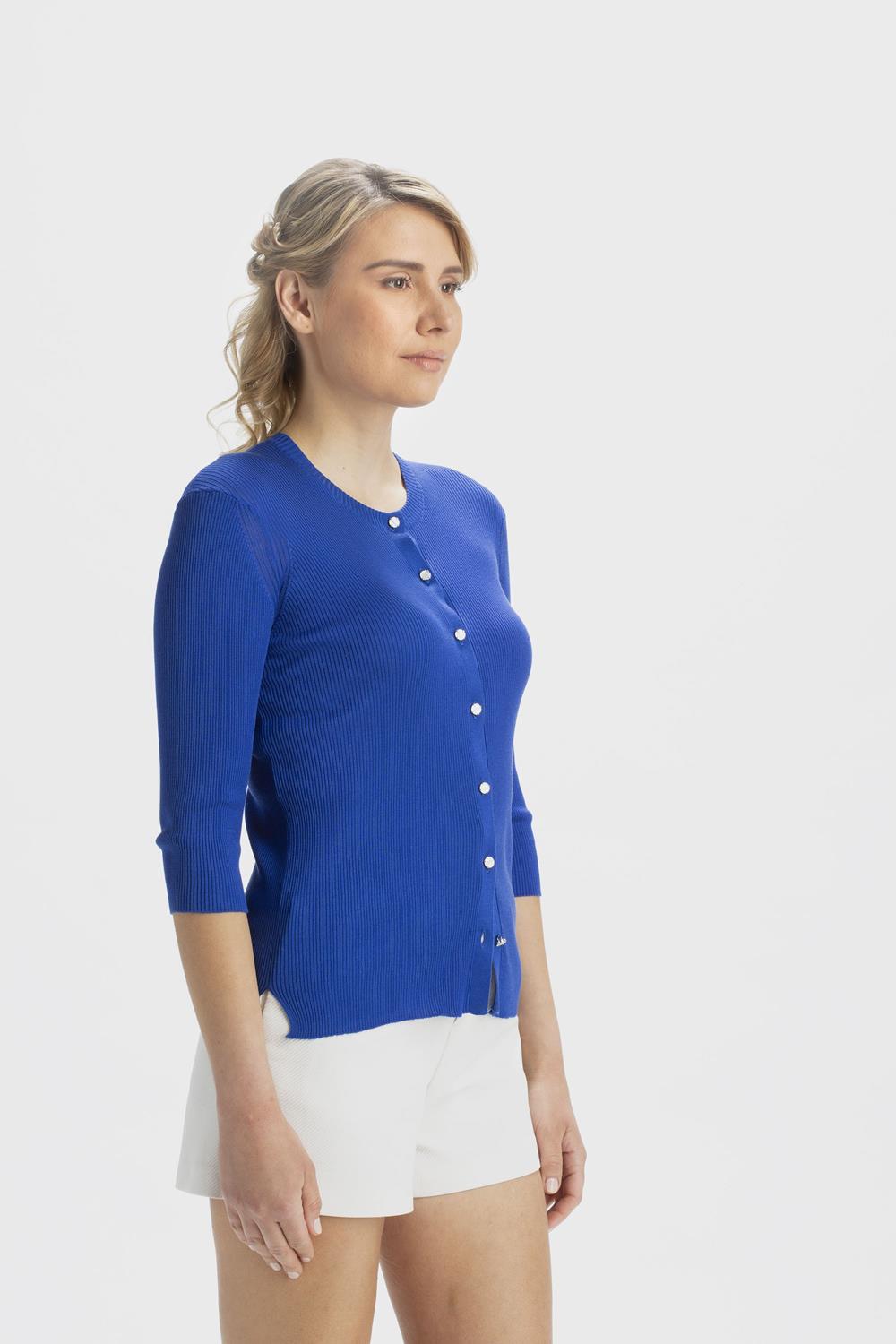 The ribbed 3/4 sleeve crew-neck jacket is made from the purest silk. Thanks to its extraordinary properties, it is extremely versatile and ideal for any occasion.